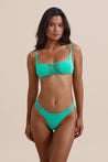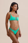 The Dario Bikini Top by Sunny Closets is for those seeking seamless support for long, sun drenched days. Featuring hints of macrame detailing with classic adjustable hardware at the bust and shoulders. Made sustainably with 85% recycled nylon 15% spandex, so you can feel good about what’s on your sun-kissed skin.