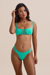 The Enzo Bikini Bottoms by Sunny Closets is cheeky cut for those seeking minimal coverage for maximum sun time featuring macrame detailing at the hip. Made mindfully with 85% recycled nylon and 15% spandex, we had both you and the planet in mind.