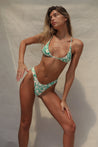 The triangle with no ties. The Lina Top by Sunny Closets is a minimalist design offering thin straps at the shoulders and bust with classic slider hardware to find your ideal fit for wherever the sun takes you. Made consciously with our new custom weave texture in 83% recycled poly and 17% spandex, designed for maximum support and minimal tan lines.