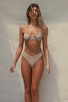 Find the sun anywhere in the Zola Bikini Bottom by Sunny Closets. Offering a high hip silhouette with moderate coverage. Made sustainably with 85% recycled nylon 15% spandex, smooth to the touch, light on the earth.