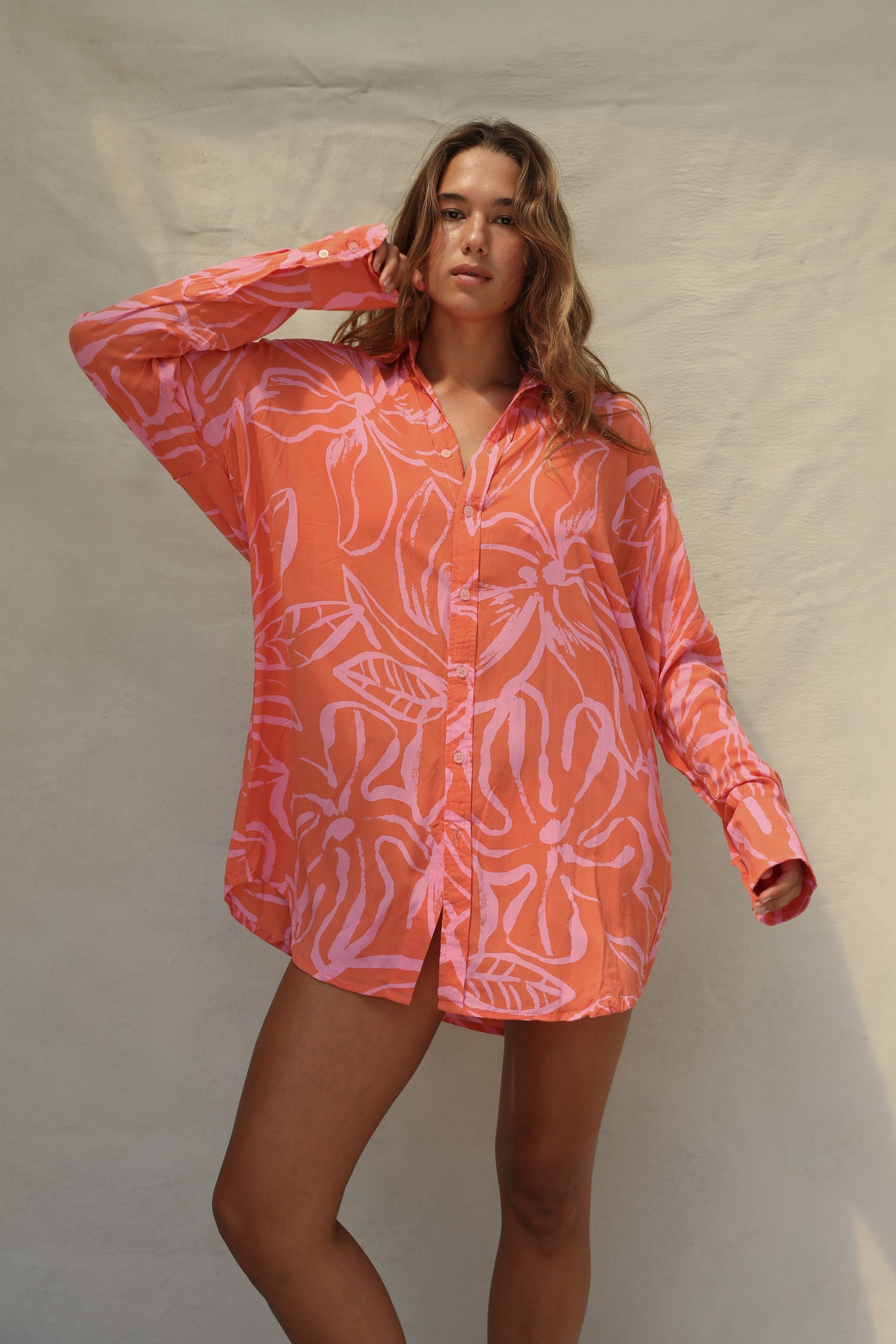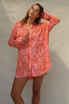 The Mimi Shirt Dress is crafted from luxurious 100% Rayon Crepe. This slightly oversized piece is designed with your summer adventures in mind, and pairs perfectly over your favorite bikini.