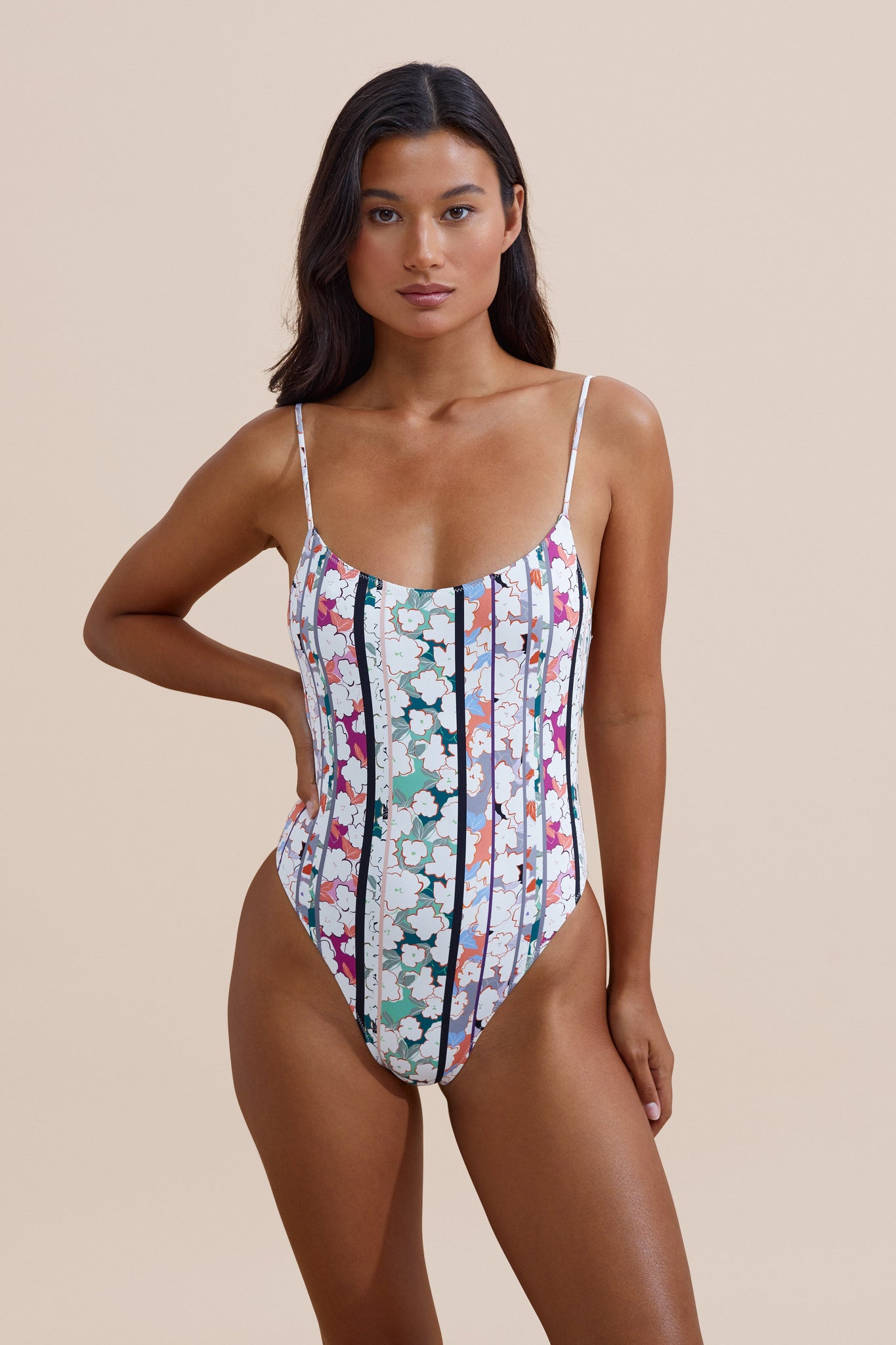 The Surya One Piece By Sunny Closets is a swim capsule must. Cut from 85% recycled nylon and 15% spandex, in our most complementary silhouette. Offering moderate coverage with a simple scoop front and a low back cut out with thin shoulder straps for a minimal look for the sun or shade.