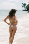 The Tyla Bottom by Sunny Closets is a skimpy choice begging for sun. Cut from 85% recycled nylon and 15% spandex, featuring a thin strap on either hip to accentuate all shapes. Toss these in your suitcase and get ready for sunkissed skin.