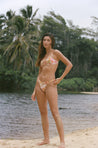The Enzo Bikini Bottoms by Sunny Closets is cheeky cut for those seeking minimal coverage for maximum sun time featuring macrame detailing at the hip. Made mindfully with 85% recycled nylon and 15% spandex, we had both you and the planet in mind.