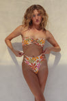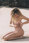 The Leilani Top By Sunny Closets blends  style with swim essential for an elevated take on a classic bandeau shape. Featuring intricate loop detailing and a tie bust to find your perfect fit. Made consciously with 85% recycled nylon and 15% spandex, so you can feel good about what’s in your drawers.