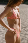 The Maxime Bikini Top by Sunny Closets is an elevated take on a racerback silhouette. We were thinking seamless support, maximum sun with a touch of spice. This piece is made sustainably with 85% recycled nylon and 15% spandex, a real swim capsule essential.
