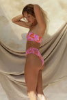 The Inez Bikini Top by sunny closets is a fresh take on the beloved bandeau. Sustainably crafted from 85% recycled nylon and 15% spandex, it features a hand-stitched macramé center—designed to hold everything together while you dance the day away.