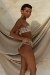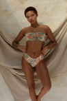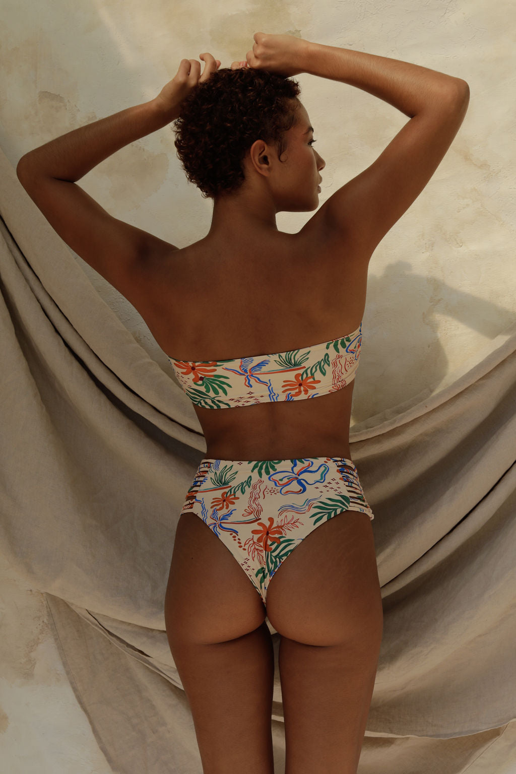 The Inez Bikini Top by sunny closets is a fresh take on the beloved bandeau. Sustainably crafted from 85% recycled nylon and 15% spandex, it features a hand-stitched macramé center—designed to hold everything together while you dance the day away.