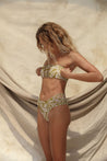 The Simone Bikini Bottoms by sunny closets are designed to carry you through endless sunny days. Offering a high hip silhouette featuring hand-stitched macrame tracing along the sides to accentuate your natural curves. This piece is made sustainably from 85% recycled nylon and 15% spandex, giving you that sweet-like-butter fit.